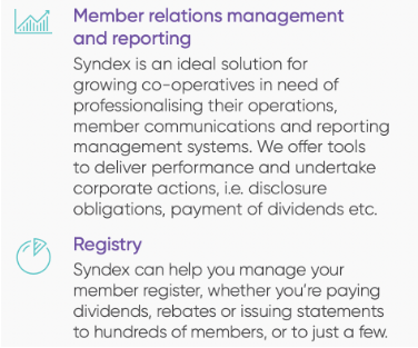 Syndex offers a solution that revolutionises member relations, operational efficiencies and enhances collaboration between co-operatives, at the same time providing a mechanism for raising new capital.